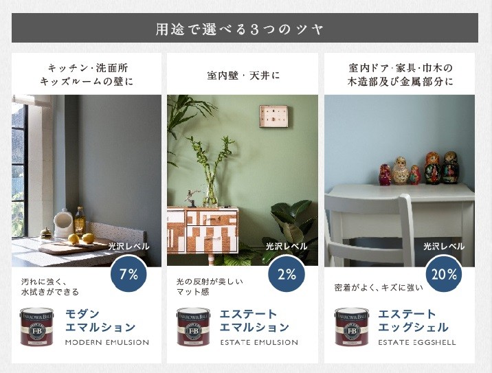 F&Bは、使う用途によって推奨されている塗料があり、艶の出方が違います。![]()